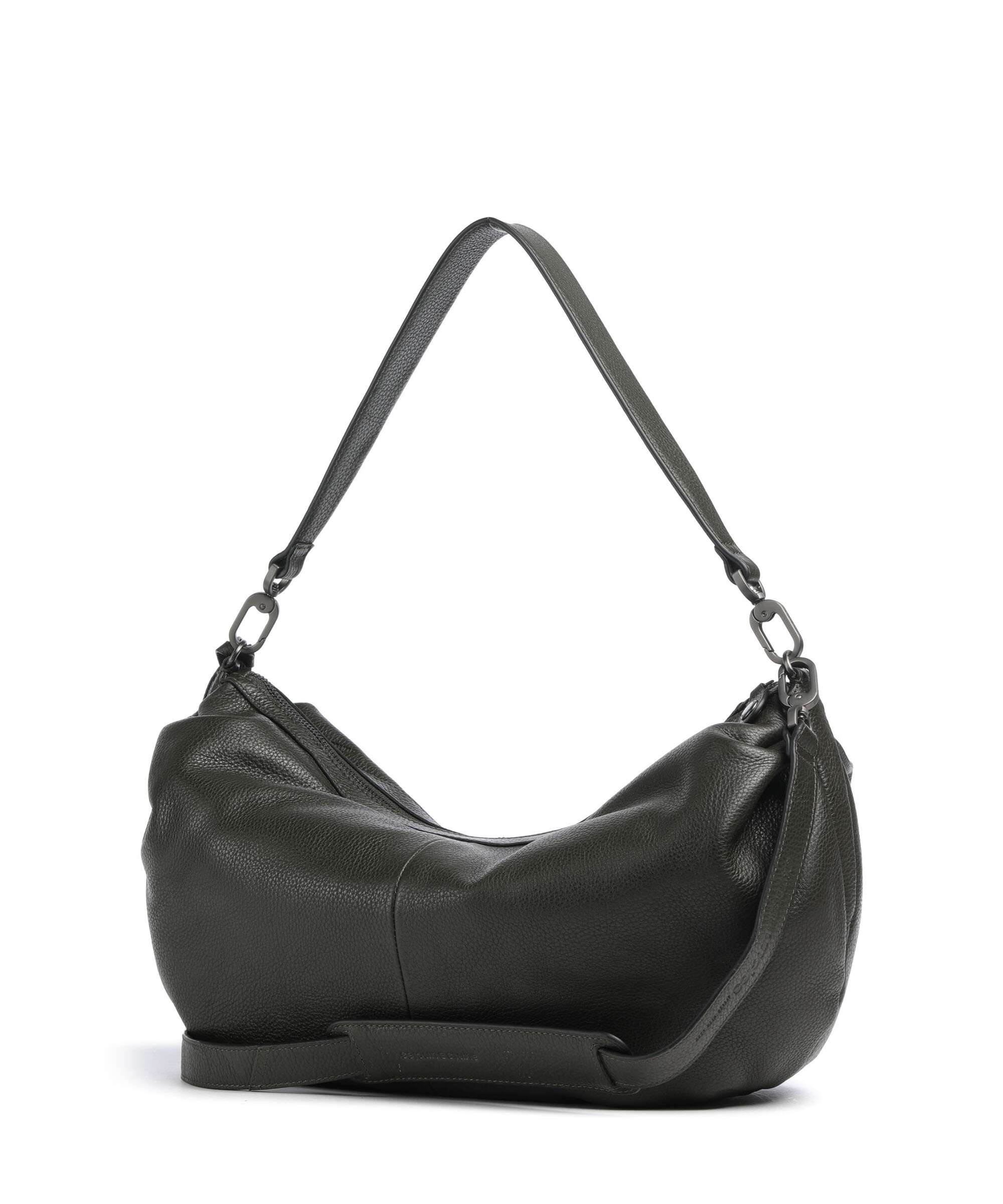 From classic black hobo bags to luxurious leather versions – the ideal model depends on your personal taste and intended use. Black hobo bags are timeless staples that match almost any outfit and always look polished. If you’re after high-quality materials, go for smooth or suede leather. Smooth leather provides a sleek, refined appearance, while suede supports a more relaxed and soft vibe. Many hobo bags are enhanced with distinctive features like bold cords, textured surfaces or metallic accents that add fashionable flair. The practical aspects are just as convincing: smart inner compartments, secure zip closures and adjustable shoulder straps make hobo bags reliable companions for work, leisure or events.