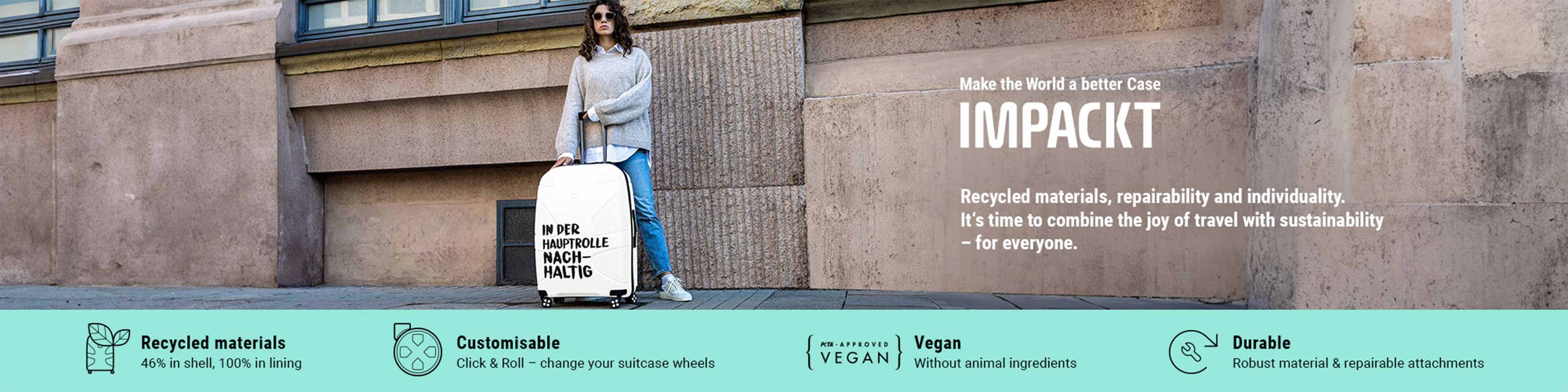 Impackt combines strong environmental values with high standards for quality, design and functionality. Production takes place under fair working conditions, using mainly post-consumer recycled materials to conserve natural resources. At the same time, the luggage features smart interior organisation, smooth-rolling wheels, practical handle systems and low weight. The result: durable pieces suitable for a wide variety of trips – from city escapes to long-haul journeys. With Impackt, you don’t just travel comfortably; you travel responsibly. The brand proves that sustainable materials, intelligent engineering and a modern look are not mutually exclusive – but can go hand in hand beautifully.