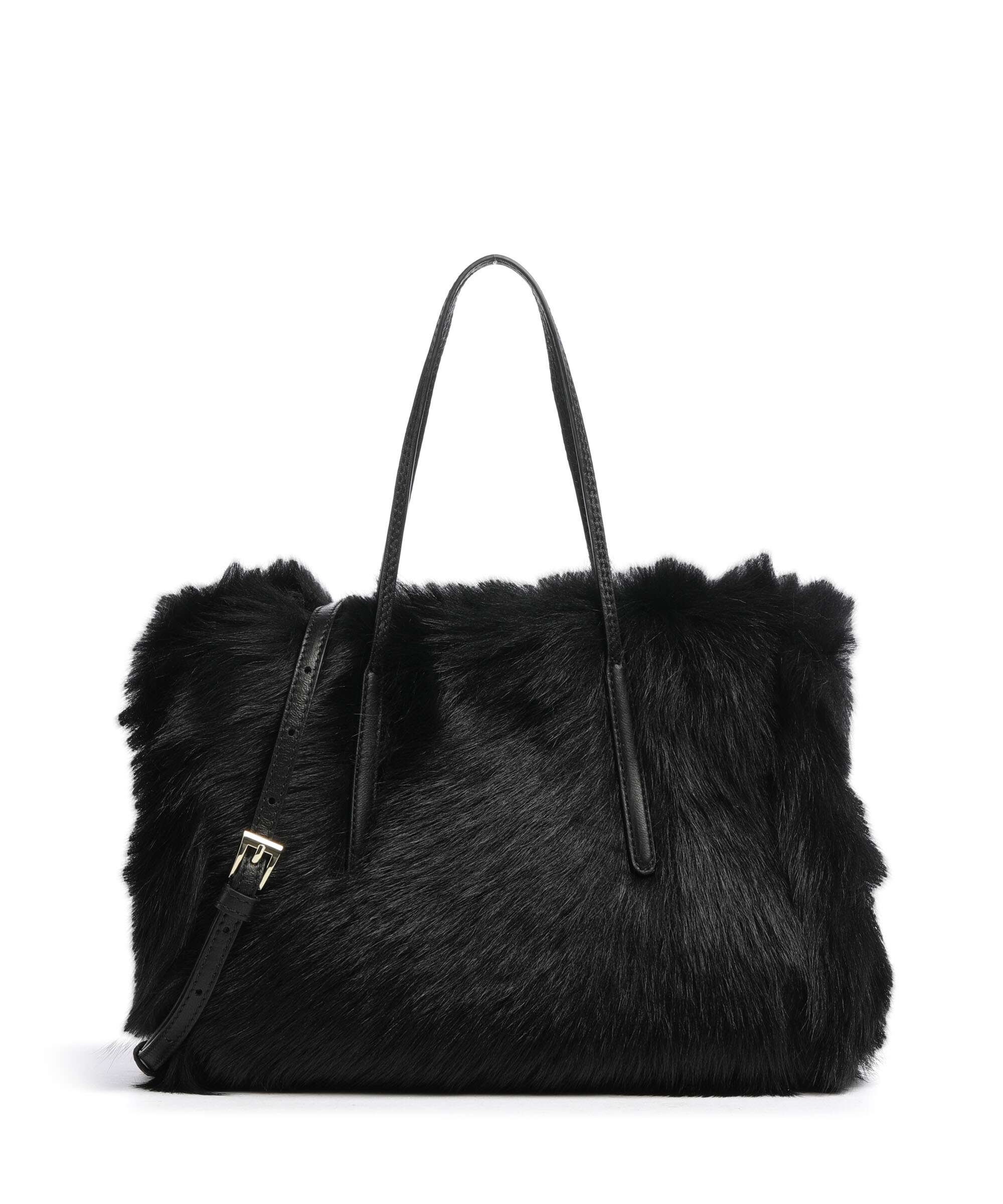 Shearling Noelle Handbag fur, fine grain cow leather black/gold